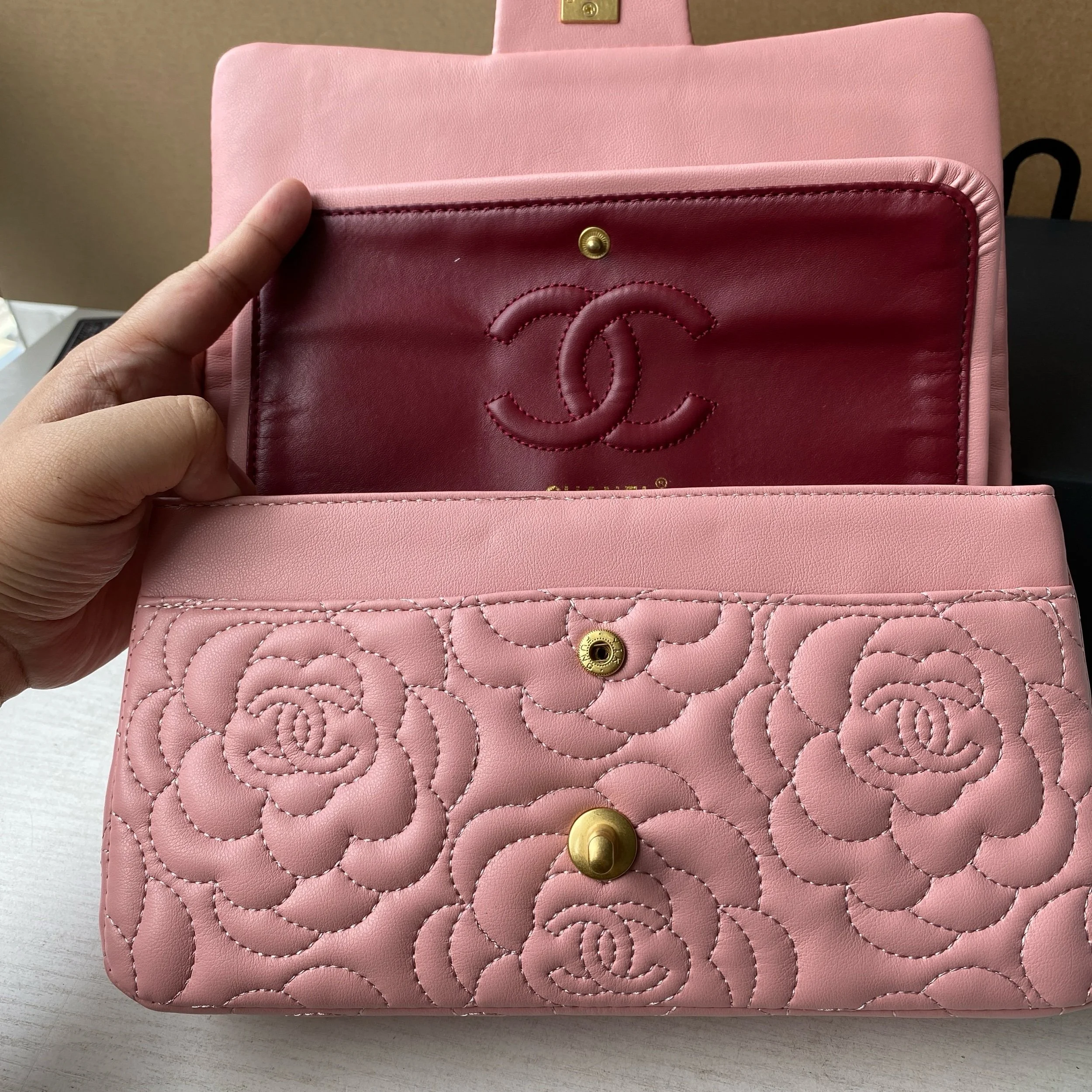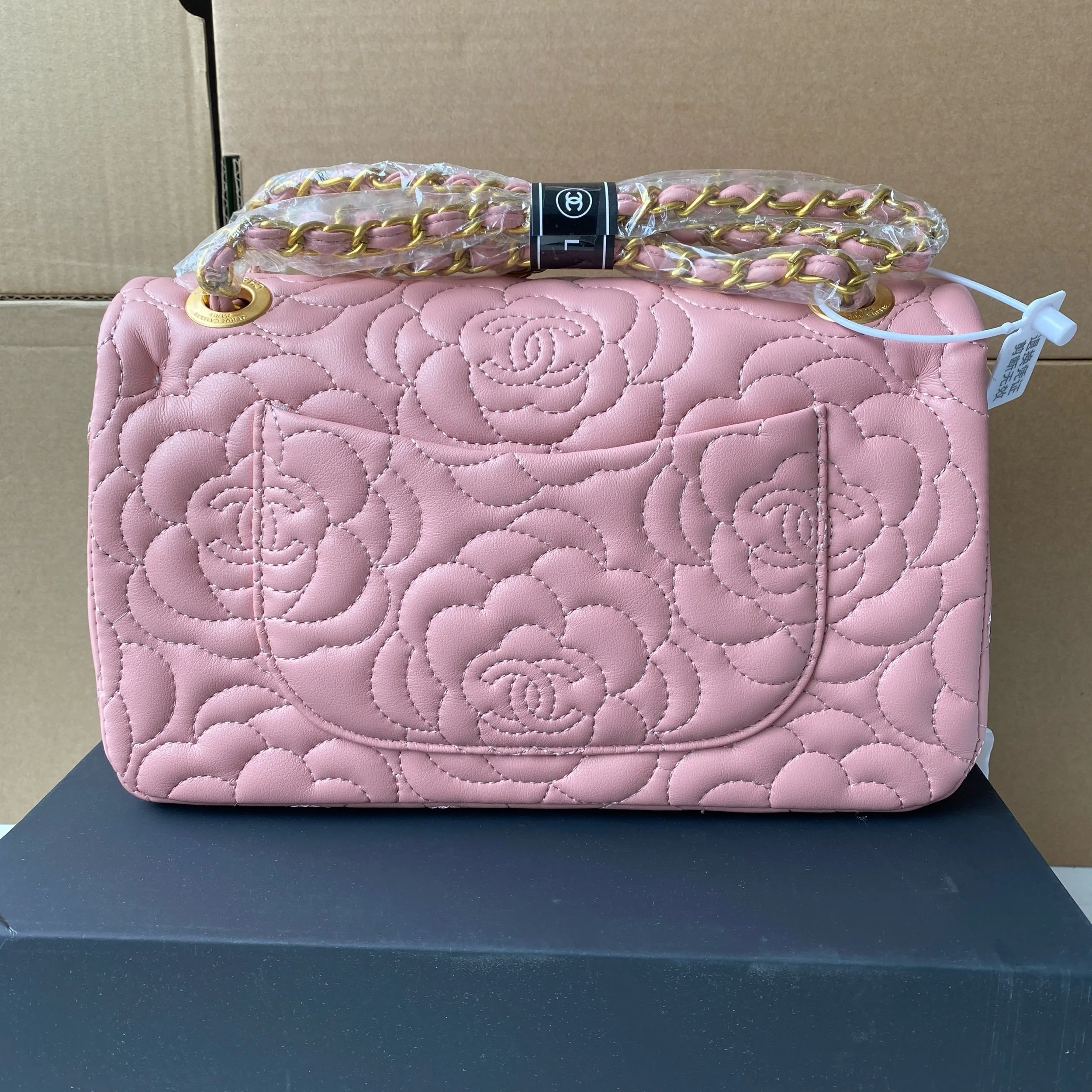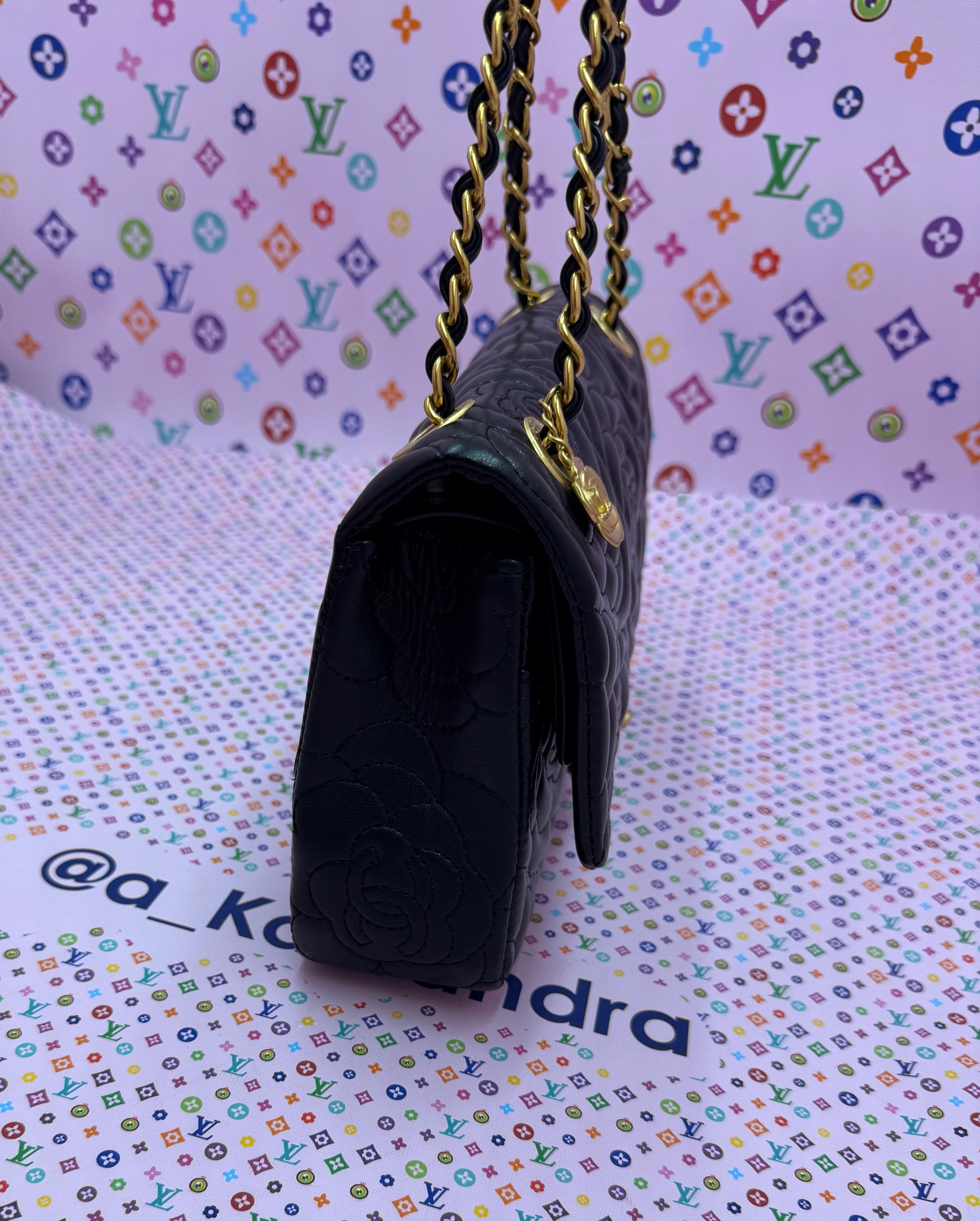 Beautiful VIP Chanel GWP Set featuring a double flap style bag, matching small crossbody, bracelet, and twilly. Please note this set is not a boutique retail bag and is being sold as a VIP / gift with purchase item. Gorgeous coordinated pieces with a timeless quilted look and elegant gold-tone accents.